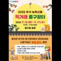 이미지 =2025 추석 농특산물 직거래 중구장터 포스터 서울 중구가 추석을 앞두고 오는 16일과 17일 양일간 중구청 앞 광장에서 직거래 장터를 연다. 운영... 부안, 경북 문경, 강원 속초 등 17개 지자체의 29개 업체가 참여한다. 주요 품목은 전북 부안군의 버섯·젓갈, 무주군의 꿀·도라지청, 문경시의 사과...