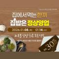 전남 고흥군이 운영하는 온라인 농수축특산물 쇼핑몰 '고흥몰'이 가정 내 식사를 보다 간편하고 실속 있게 즐길 수 있도록 돕기 위해 집밥 중심 기획전을 운영한다. 이번 행사는 '집에서 먹는 한 끼, 집밥은 정상영업'을 주제로, 밀키트 반조리 식품 국 찌개류 밑반찬 등 집에서 손쉽게 준비할 수 있는 상품을...