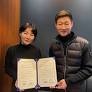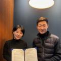 전남 곡성 농특산물로 만든 생막걸리 ‘시향가’가 미국 수출길에 오른다. 곡성군은 지역 농업회사법인 시향가㈜에서 생산한 생막걸리가 미국 뉴욕 맨해튼에 진출한다고 28일 밝혔다. 양숙희 시향가 대표(왼쪽)와 심성철 셰프가 업무협약을 체결한 뒤 기념촬영을 하고 있다. 곡성군 제공 시향가는 곡성 대표...