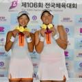 22일 부산 금정구 스포원파크 테니스장에서 열린 제106회 부산 전국체육대회 테니스 여자일반부 단체전 결승(2단식 1복식). 대전 NH농협은행은 이은혜·백다연을 앞세워 박소현·김다빈이 나선 강원도청(강원대표)에 2-1로 역전승을 거두고 우승했다. 김동현 감독이 이끄는 NH농협은행은 이날 첫 단식에서...