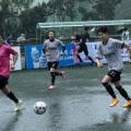14일 부산 해운대카파풋살구장에서 열린 부산 여성체육대회 풋살 경기에서 사하구청과 사상구청 소속 선수들이 빗속에서 경기를 펼치고 있다. 부산시체육...