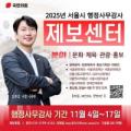 제보 대상 기관은 ▲서울시 문화본부 ▲관광체육국 ▲홍보기획관 ▲대변인실을 비롯해 산하기관인 ▲서울문화재단 ▲서울관광재단 ▲세종문화회관 ▲서울시립교향악단 ▲120다산콜재단 ▲서울역사박물관 ▲서울시립미술관 ▲서울시체육회 ▲서울시장애인체육회 등이다. 또한 지역 현안에 대한 위법...