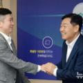 악수 나누는 김관영 전북특별자치도지사와 유승민 대한체육회장