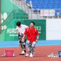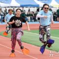 19일 오전 대구 달성군 현풍읍 달성종합스포츠파크에서 열린 '대구사회복지종사자 복지큰마당' 행사 중 미션 계주에 출전한 선수들이 일바지(고무줄 통바지)를 입고 고무신 던져 받기 미션을 수행하고 있다. 이날 행사에는 군위군을 포함한 대구시 9개 구·군 사회복지사업 종사자 1000여 명이 참석했다....