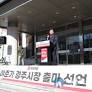 (경주=연합뉴스) 손대성 기자 = 여준기(58) 경주시체육회장이 3일 경북 경주시청 앞에서 기자회견을 열고 경주시장 선거 출마를 선언했다.