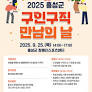구인·구직 만남의 날 행사 포스터 충남 홍성군은 오는 25일 오후 2시 장애인스포츠센터에서 취업 기회와 우수 인재 채용의 장을 제공하는 '구인·구직 만남의 날' 행사를 개최한다고 밝혔다. 이번 행사에는 25개 직·간접 참여 기업과 6개 창업기업이 함께하며, 약 108명을 채용할 예정이다. 직접 참여 기업은...