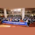 6일 충남 아산시 온양관광호텔 크리스탈볼룸홀에서 열린 더불어민주당 충남도당 주최 충남대전통합 타운홀 미팅에서 참석자들이 행정통합을 촉구하는 손피켓을 들고 기념 촬영하고 있다. 2026.2.6/뉴스1