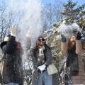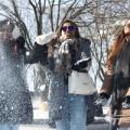 외국인 관광객들이 2일 서울 용산구 남산을 찾아 눈을 뿌리며 웃고 있다. 전국 곳곳에 눈이 내린 뒤 매서워진 추위는 5일까지 다소 풀릴 전망이다.