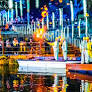 경남 함안군 무진정 연못 위로 황금빛 낙화가 장관을 이루고 있다. '함안낙화놀이'는 조선시대부터 이어져온 전통 불꽃놀이로 '2025년 한국 관광의 별'에 선정됐다.