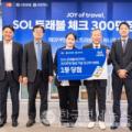 여행과 일상 결제를 동시에 겨냥한 상품으로 이용자 기반을 확대했다. 지난 14일 서울시 중구 신한은행 본점에서 'SOL트래블 체크카드 300만장 발급 기념 대고객 이벤트' 세레머니 행사에서 당첨 고객 두명(가운데)과 이승목 신한은행 고객솔루션그룹장(왼쪽 두번째), 김영일 신한카드 Payment그룹 부사장(왼쪽...