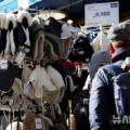 쌀쌀한 날씨에 방한용품 살피는 관광객