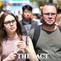 초여름 더위에 민소매 차림 관광객들
