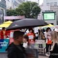 (서울=연합뉴스) 홍해인 기자 = 추석 명절 연휴 마지막 날인 9일 서울 중구 명동 거리에 관광객과 시민들이 오가는 가운데 축제 관계자들이 홍보...