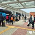 2월 마지막 주말이자 '3·1절' 연휴 첫날인 28일, '국악 와인 열차' 투어 프로그램에 참여한 수도권 관광객들이 경북 울진군 울진역 플랫폼에서 '울진대게와붉은대게축제'가 펼쳐지는 후포항으로 이동하기 위해 관광버스에 오르고 있다. '국악 와인 열차'는 울진군이 코레일과 연계한 열차·숙박·관광을 결합한...