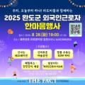 드로잉 퍼포먼스, 가요제, 마술·레크리에이션 등 볼거리 마련 전남 완도군이 오는 26일 오후 7시 완도 해변공원 야외 음악당에서 외국인 근로자와 주민이 함께하는 '2025 외국인 근로자 한마음 행사'를 개최한다고 18일 밝혔다. 군은 지난 2022년부터 필리핀, 라오스 등과 해외 인력 확보를 위한 업무 협약(MOU)을...
