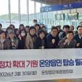 울산 울주군은 온양읍 단체장협의회가 30일 KTX-이음 남창역 정차 노선 확대를 기원하는 '온양읍민 탑승 릴레이'에 동참했다고 밝혔다. 이날 온양읍... 이어 "추후 온양지역 발전과 함께 운행 노선이 확대된다면 관광이나 지역경제와 교통이 함께 성장하면서 긍정적인 파급효과를 가져올 것으로 기대된다"고...