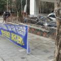 “과태료 부과나 반복 위반 시 제재 강화를 논의할 때가 됐다”고 덧붙였다. [ 경기신문 = 김태호 기자 ] 19일 용인시 기흥구 영덕동 아파트단지 주변 A기업 건물 앞에 한달여째 내걸려 있는 현수막. 행인들에게 불편을 줄 뿐만 아니라 운전자 시야를 가려 교통사고 위험마저 우려되고 있다. (사진=독자제공)