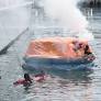 13일 오후 부산 영도구 부산해경 전용부두 해상에서 선박사고를 가정해 구명뗏목 투하·비상이함 훈련이 벌어지고 있다. 이번 훈련은 해상사고가 발생했을 때 비상...