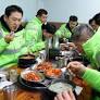 장동혁 국민의힘 대표가 26일 서울 도봉구 일대에서 생활폐기물 상차와 가로청소 봉사활동을 마친 뒤 환경공무관들과 국밥을 함께하며 조찬 간담회를 갖고 있다.