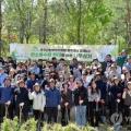 28일 대전시 서구 산림복지종합교육센터에서 남태헌 원장을 비롯한 한국산림복지진흥원 임직원들이 탄소흡수원 확대를 위한 나무 심기 행사를 마치고 기념 촬영을 하고 있다. 산림복지진흥원 이날 겹벚꽃과 라일락, 홍매화 등 200여 그루를 심었다. 2025.4.28 [한국산림복지진흥원 제공. 재판매 및 DB 금지]