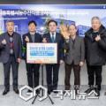 진교훈 서울 강서구청장(가운데)이 구청에서 열린 '서울농수산식품공사 강서지사 성품 전달식'에서 이봉준 서울농수산식품공사 강서지사장(왼쪽 세... 구는 전달받은 식품 꾸러미를 서울사회복지공동모금회를 통해 설 명절 전까지 지역 장애인, 아동, 어르신 시설과 단체에 지원할 계획이다....