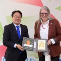 강기정 광주광역시장이 20일 오전 시청 접견실에서 미쉘 윈트럽 주한 아일랜드대사에게 한강 작가의 '소년이 온다'를 선물한 후 기념촬영을 하고 있다.... 수도자들은 광주에 아주 깊게 자리잡고 있으며, 아일랜드 사람들도 이 부분을 자랑스럽게 생각한다"며 "특히 60여 년 동안 광주에서 활동하며 장애인 인권을...