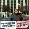 지난 27일 서울 중구 정부서울청사 앞에서 1인 시위에 나선 김택우 의협 회장의 모습. 김 회장은 보건복지부가 추진 중인 2027학년도 의대 정원 확대 재검토를 촉구했다. (사진=대한의사협회) 이어 “대책 논의는 전혀 없고, 교육 당사자인 학생과 교수의 어려움은 전혀 고려되지 않은 상태로 의대 정원 숫자만...