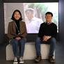 10일 서울 중구 모두미술공간에서 문승현 작가(오른쪽)와 한국장애인문화예술원의 신상미 예술지원부 부장이 문 작가의 작품 앞에 나란히 앉아 있다.