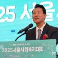 오세훈 서울시장이 13일 오후 서울 중구 프레지던트호텔에서 열린 2025 서울사회복지대회에서 축사를 하고 있다. 2025.10.13. kch0523@newsis.com