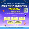 전남 완도군은 오는 26일 오후 7시, 완도 해변공원 야외 음악당에서 외국인 근로자와 주민이 함께 어우러지는 『2025 외국인 근로자 한마음 행사』를... 근로자 복지 등 다양한 시책을 추진 중이다. 현재 군에는 1,100여 명의 외국인 근로자가 거주하고 있으며 그중 결혼이민자 가족의 초청을 통해 근무하고 있는...