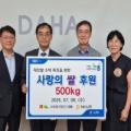 농협 제천시지부 제공 NH농협 충북 제천시지부(지부장 김재선)와 남제천농협(조합장 류승인)이 9일 제천시 흑석동에 위치한 사회복지법인 '다하'를 찾아 '사랑의 쌀' 후원행사를 가졌다. 이날 행사에서 농협제천시지부와 남제천농협은 다하재단에 '사랑의 쌀' 500㎏과 친환경쌀로 만든 쌀가공품 1000개를 전달했다....
