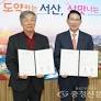 11월 10일 서산시청 시장실에서 열린 '해드림 서산' 업무협약식에서 이완섭 서산시장(오른쪽)과 성우종 충남사회복지공동모금회 회장이 협약서를 교환하고 있다.