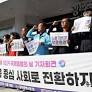 한눈에 보는 오늘 : 사회 - 뉴스 : [광주=뉴시스] 이현행 기자 = 민주노총광주본부가 28일 오후 광주 서구 광주시청에서 '2025 국제돌봄의날 기자회견'을 열고 구호를...