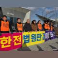 오후 전남 나주시 한국전력공사 본사 앞에서 결의대회를 열고 법원 판결에 따라 조합원을 직접고용하라고 강조했다. <정소희 기자> 하청업체에 소속돼 섬에서 발전시설을 관리한 노동자들을 한국전력공사가 직접고용해야 한다고 항소심 법원이 재차 인정했다. 1심에 이어 2심 재판부도 한전의 불법파견에...