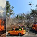 ▲ 12일 오전 수원시 팔달구 옛 경기도청 인근 팔달산에서 방화로 추정되는 화재가 발생한 가운데 소방헬기가 현장에물을 뿌리고 있다. /김철빈 기자·경기도소방재난본부 수원 화성과 맞닿은 도심 산인 팔달산 일대에 연쇄적으로 불을 지른 40대 남성이 구속 상태로 검찰 조사를 받는다. 수원팔달경찰서는...