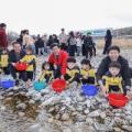 23일 강원 삼척시 오십천에서 정라초등학교 학생과 지역 어린이집 원생들이 어린연어 10만 마리를 방류하는 '2026년 어린연어 방류행사'를 하고 있다. 2026.3.23 [삼척시 제공. 재판매 및 DB 금지]