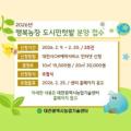 대전시농업기술센터는 도심속 농업․농촌 체험을 통한 도시농업 확산을 위해 오는 9일부터 대전시민을 대상으로 행복농장(도시민텃밭) 참가자 110세대를 모집한다. 행복농장은 농업기술센터(유성구 교촌대정로 97) 내부에 위치하고 있으며, 텃밭은 10㎡구획 65개, 20㎡구획 45개로 구성되어 분양하고 있고...