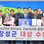 전남 장성군이 전남도 귀농어귀촌 종합평가에서 2년 연속 1위를 기록하며 '대상'을 수상했다고 11일 밝혔다. △ 김한종 장성군수가 전남도 귀농어귀촌 종합평가에서...