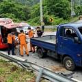 타이어 터진 트럭, 가드레일 뚫고 도로 이탈…3명 사상