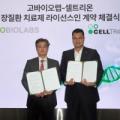 [셀트리온 제공] [헤럴드경제=최은지 기자] 셀트리온은 국내 바이오 기업 고바이오랩과 장 질환 치료제 후보물질 3종에 대한 라이선스 인(License-in) 계약을 체결했다고 25일 밝혔다. 이날 인천 송도 연수구 셀트리온 글로벌생명공학연구센터에서 열린 체결식에는 서진석 셀트리온 경영사업부 대표이사와...