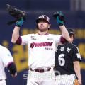 키움 히어로즈 트렌턴 브룩스가 3일 오후 서울 구로구 고척스카이돔에서 진행된 2026 신한 SOL(쏠) KBO리그(프로야구) LG 트윈스와 경기에서 5회말 선두로 나와 2루타를 친 뒤 세리머니 하고 있다. [스포츠Q(큐) = 손힘찬 기자 저작권자 © 스포츠Q(큐)