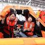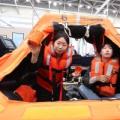 1일 인천 연수구 송도컨벤시아에서 열린 2026 해양레저관광 박람회에서 관람객들이 구명뗏목에 올라 생존체험을 하고 있다.